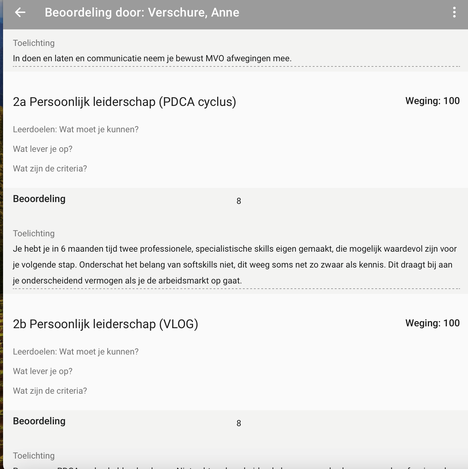 Feedback van verschillende kanten heb ik serieus opgenomen en er bewust mee aan de slag gegaan. In gesprekken met medestudenten, vrienden en familie merkte ik dat ik beter luister, rustiger reageer en vaker samenvat wat de ander zegt. Hierdoor ontstond meer openheid en wederzijds begrip om direct te overtuigen en kan beter aansluiten bij wat de ander nodig heeft.